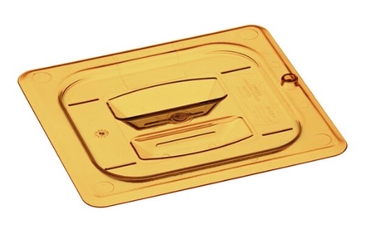 Cambro 60HPCH150 H-Pan™ 1/6 Size Amber High Heat Handled Lid